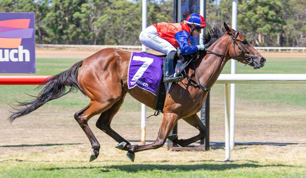 Hello Youmzain three-year-old Hello Veneta opened her winning account at Mount Barker on Sunday when scoring a comprehensive win in the George Taylor Maiden (1300m).